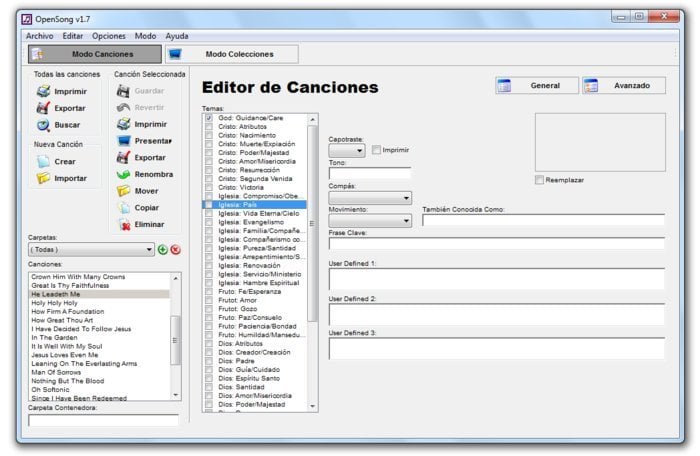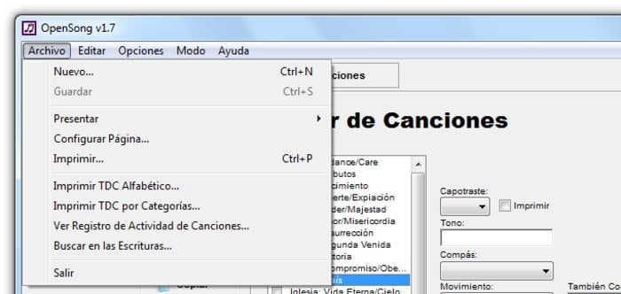 OpenSong es un Programa que hace de administrador de letras y acordes de canciones, que le permite administrar una gran base de datos de acordes y letras musicales, para facilitarte en la impresión digital de varios formatos o para presentarlos como diapositivas. OpenSong, además, es capaz de convertir los acordes entre varias claves.